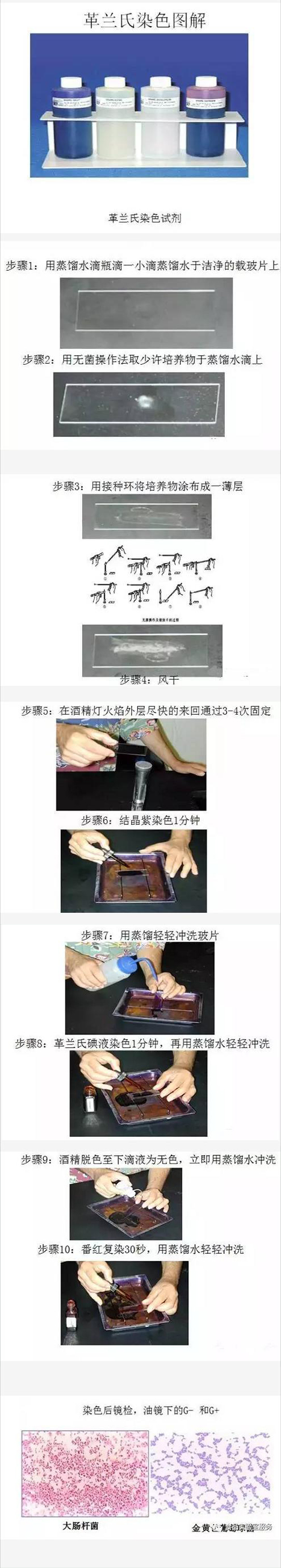 涂片→干燥→固定→初染→水洗→媒染→水洗→脫色→水洗→復染→水洗→干燥→觀察